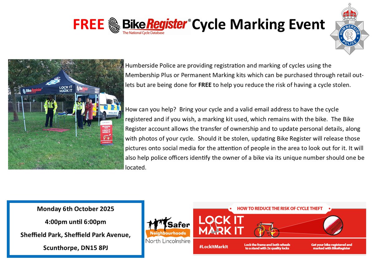 Comments Off on *Reminder* The #Crosby NPT will be in Sheffield Park between 4pm and 6pm today offering free cycle marking and registration on http://www.bikeregiste…*Reminder*